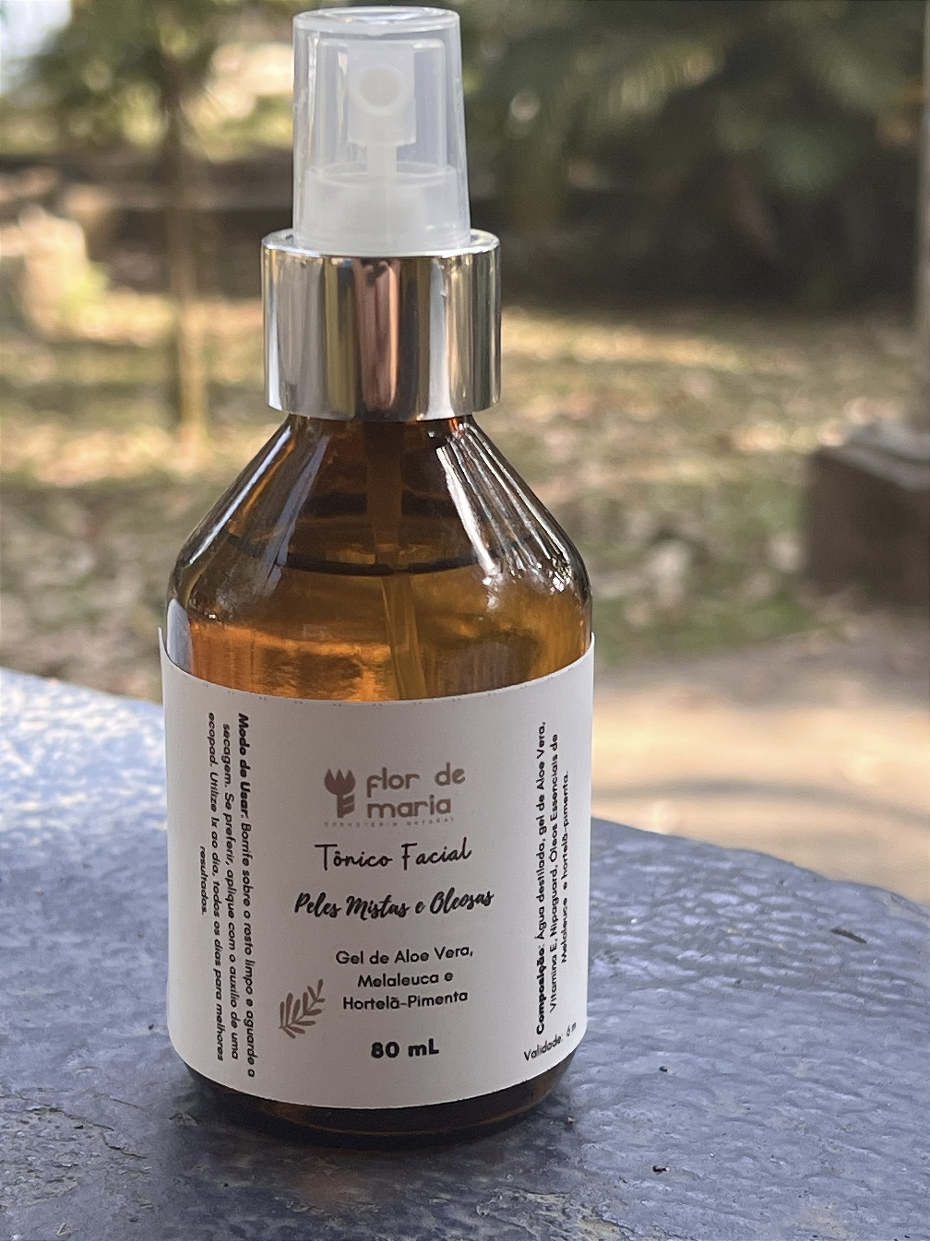 Tônico facial pele mista e oleosa com óleos essenciais de melaleuca e hortelã-pimenta